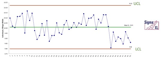 In the Control chart, the Lower Control Limit (LCL) – the minimum value that a process can reach without being considered abnormal and the Upper Control Limit (UCL) – the maximum value that a process can reach without being considered abnormal.